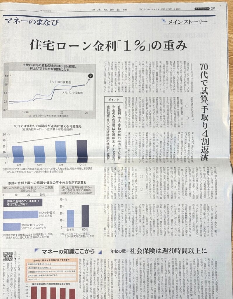 本日の日経新聞朝刊で住宅ローンの金利についての記事がありました。